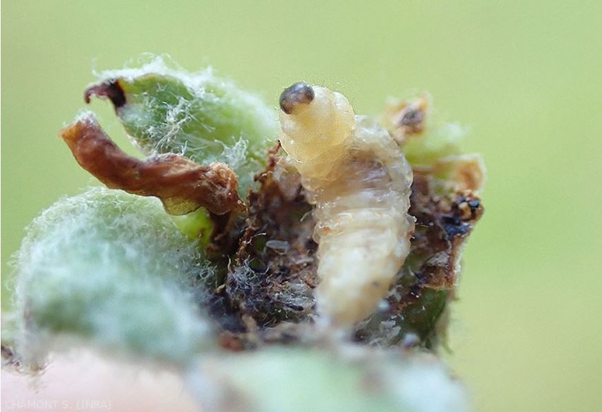 Sa présence peut s’observer tout l’été sur les fruits, jeunes ou prêts à être récoltés. Souvent, on ne voit qu’un point d’entrée du ver, assez discret, mais à la coupe, le fruit apparaît véreux jusqu’au cœur avec très peu de chair consommable. Il arrive qu’il chute avant maturité.