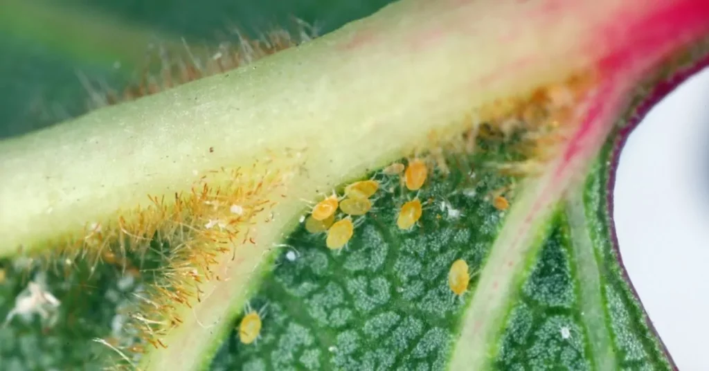 Les bourgeons commencent par pousser de façon déformée avant de se couvrir d’un feutrage blanc, ensuite les fleurs se dessèchent et les feuilles se couvrent d’un léger duvet blanc farineux.